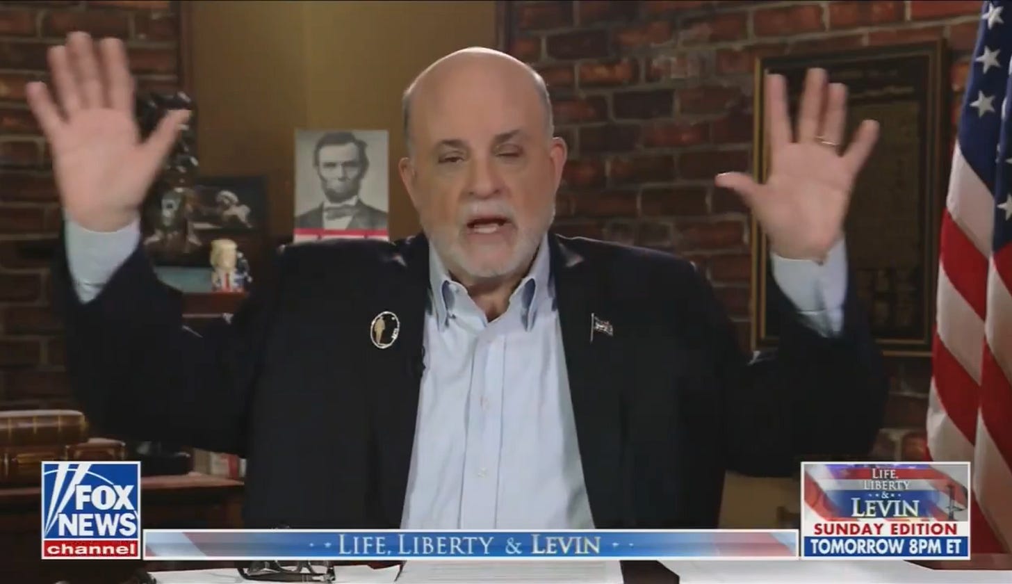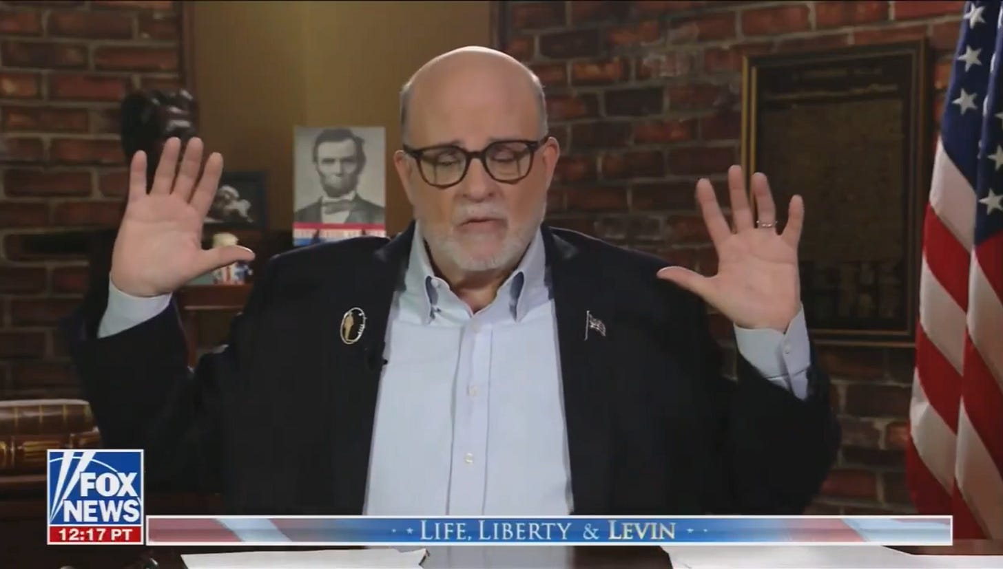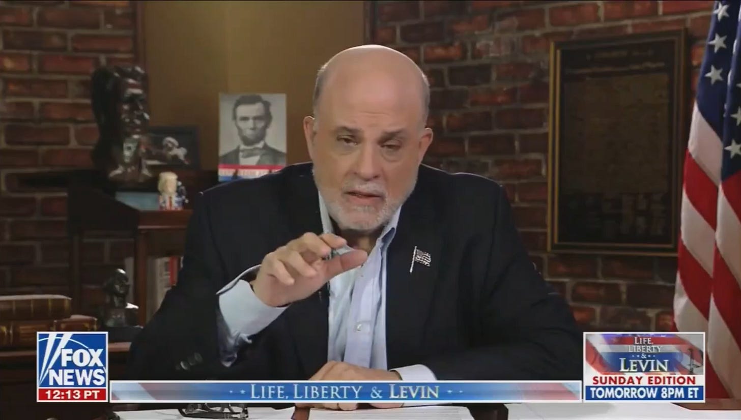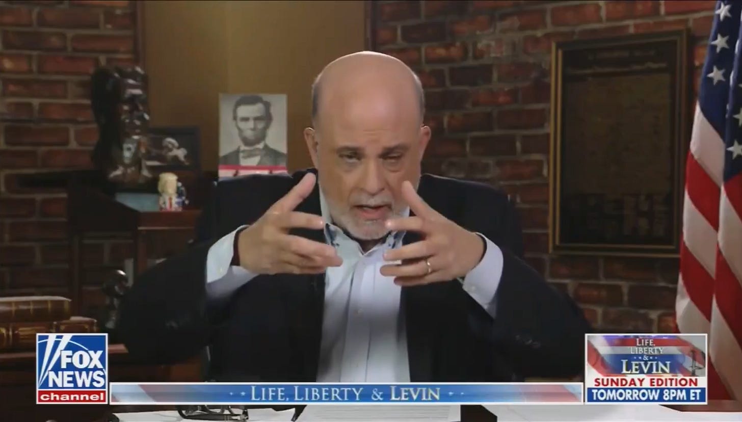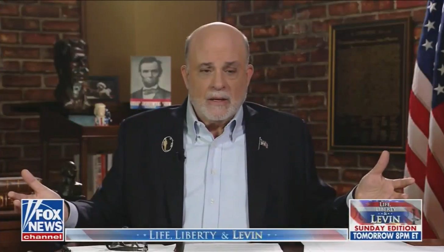 J’ai regardé l’émission de Mark Levin pour vous. De quoi était-il question ? De boots on the ground. D’uranium. De l’implication de l’Iran dans le 11-Septembre (l’Iran n’avait rien à voir avec le 11 septembre), et de cette guerre de Trump qui restera dans l’histoire comme “la plus grande campagne militaire” depuis la Révolution américaine. Pour comprendre ce qui va se passer, il faut écouter Levin. Je vous raconte. Je vous ai déjà parlé à plusieurs reprises de Mark Levin dans Zeitgeist depuis les préparatifs des frappes contre l’Iran. Sa voix semble plus déterminante que jamais. Ce n’est pas un commentateur conservateur comme les autres. Cet ancien de l’administration Reagan (il était le directeur de cabinet du ministre de la Justice) a une émission de radio (le Mark Levin Show, diffusé sur des centaines de radios locales à travers le pays à l’heure du retour du travail) et une autre à la télévision, en soirée le week-end sur Fox News. Ses livres se vendent très bien. C’est un néoconservateur. Trump ne l’a pas toujours suivi, mais dans cette séquence, son rôle est particulièrement visible. Je vous avais raconté que quelques heures avant la frappe contre l’ayatollah Khamenei, qui allait marquer le début de la guerre, Mark Levin était apparu sur Fox News pour dire :
