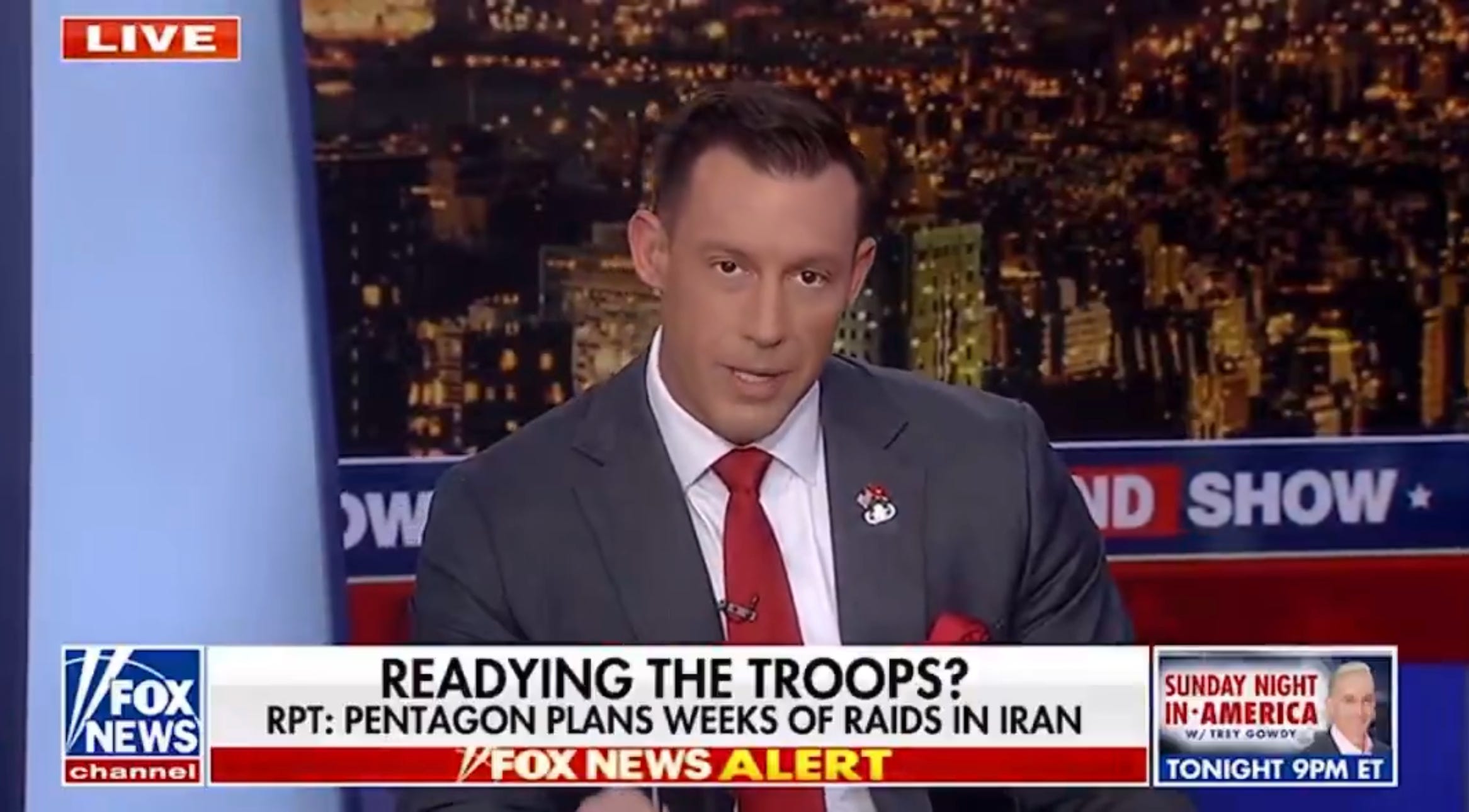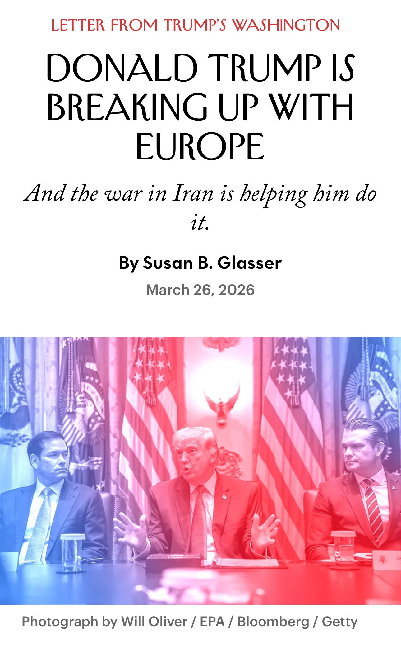 Hi everyone, c’est Zeitgeist. Le président s’apprête-t-il vraiment à envoyer des troupes au sol ? Les signaux se multiplient. Trump dit non. Puis il dit peut-être. Puis il dit que, s’il le faisait, il ne nous le dirait pas. Pendant ce temps, le Pentagone prépare. Des raids, des forces spéciales, pour récupérer l’uranium iranien. Sur le papier, quelques semaines. Dans la réalité, personne ne sait où cela nous mène. Sur Fox, un autre animateur, amputé des deux jambes en Afghanistan, interpelle le président à l’antenne. Il s’inquiète qu’il soit entraîné dans une nouvelle guerre sans fin. Dans ce numéro, il sera aussi question du fossé qui se creuse entre Washington et l’Europe, la fin de “l’agréable fiction” ; de la tête de Trump sur les dollars et de sa signature sur des billets, une première ; des divagations du président sur les colonnes corinthiennes de sa nouvelle salle de bal, entre deux réponses sur l’Iran ; des heures de queue dans les aéroports depuis des semaines, des fonctionnaires non payés en raison d’un blocage politique sur l’immigration. Et des mots de Bruce Springsteen, qui a pris part aux manifestations anti-Trump ce week-end. Les frappes aériennes ont détruit une partie des capacités iraniennes, mais elles ne peuvent pas atteindre tout. Les installations les plus sensibles sont enfouies profondément, parfois sous des montagnes. L’uranium hautement enrichi est toujours là. Il faut donc envoyer des boots on the ground. 🟨🟧 Le mage de TrumpUn animateur néoconservateur de Fox, qui a convaincu Trump de frapper l'Iran, l'appelle désormais à envoyer des troupes au sol. Il accuse Téhéran d'être lié à Al-Qaïda et au 11 Septembre.Hi everyone, c’est Zeitgeist. Le président s’apprête-t-il vraiment à envoyer des troupes au sol ? Les signaux se multiplient. Trump dit non. Puis il dit peut-être. Puis il dit que, s’il le faisait, il ne nous le dirait pas. Pendant ce temps, le Pentagone prépare. Des raids, des forces spéciales, pour récupérer l’uranium iranien. Sur le papier, quelques semaines. Dans la réalité, personne ne sait où cela nous mène. Sur Fox, un autre animateur, amputé des deux jambes en Afghanistan, interpelle le président à l’antenne. Il s’inquiète qu’il soit entraîné dans une nouvelle guerre sans fin. Dans ce numéro, il sera aussi question du fossé qui se creuse entre Washington et l’Europe, la fin de “l’agréable fiction” ; de la tête de Trump sur les dollars et de sa signature sur des billets, une première ; des divagations du président sur les colonnes corinthiennes de sa nouvelle salle de bal, entre deux réponses sur l’Iran ; des heures de queue dans les aéroports depuis des semaines, des fonctionnaires non payés en raison d’un blocage politique sur l’immigration. Et des mots de Bruce Springsteen, qui a pris part aux manifestations anti-Trump ce week-end. Alors que nous sommes entrés dans la cinquième semaine de guerre au Moyen-Orient, ce sont trois mots dont on va beaucoup entendre parler dans les prochains jours. Boots on the ground. Des bottes au sol. C’est l’expression habituelle aux États-Unis pour évoquer des troupes au sol dans une guerre. Le président a eu la question cette nuit dans Air Force One.