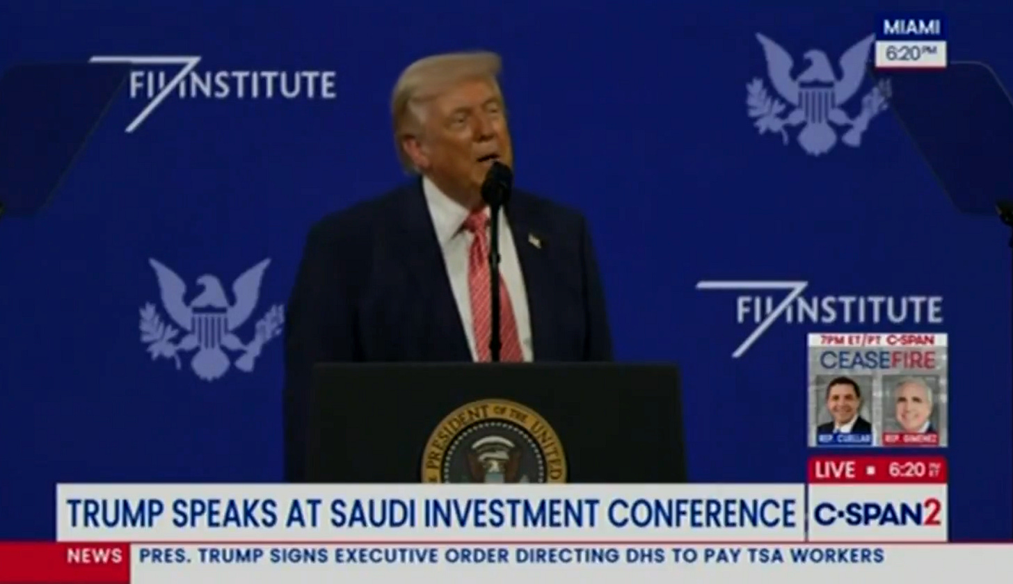 La fin de “l’agréable fiction”Avec la guerre au Moyen-Orient, les deux rives de l’Atlantique s’éloignent encore un peu plus. Le fossé se creuse entre les États-Unis de Donald Trump et les Européens. On le voit tous les jours, mais c’était frappant lors du discours prononcé vendredi à Miami par le président Trump devant un parterre d’investisseurs réunis pour le sommet Future Investment Initiative Institute, soutenu par un fonds souverain saoudien. Il ne parle pas seulement de la guerre en Iran. Il parle de l’Europe. Et, plus précisément, de ce qui ressemble de plus en plus à une rupture.