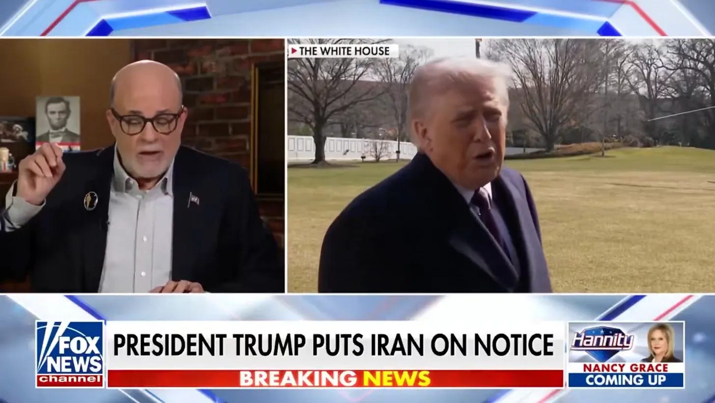 Ces révélations du Wall Street Journal viennent après celles du Washington Post ce week-end, selon lesquelles le Pentagone prépare des opérations terrestres en Iran pouvant durer plusieurs semaines. Il ne s’agirait pas d’une invasion massive, mais de raids menés par des forces spéciales et de l’infanterie. Ces missions pourraient viser des objectifs précis, comme des sites militaires ou des positions stratégiques dans le Golfe. Aucune décision n’a encore été prise, insiste le WaPo, mais ces plans visent à offrir au président un maximum d’options militaires. Des milliers de soldats américains ont été envoyés au Moyen-Orient ces derniers jours. Des Marines, des unités embarquées sur des navires amphibies comme l’USS Tripoli, des parachutistes de la 82e division aéroportée. Le Pentagone prépare donc des scénarios. Des boots on the ground. Pour récupérer l’uranium iranien. Sur la base de quelles informations Donald Trump va-t-il faire son choix, peut-être le plus lourd de sa présidence ? Je vous racontais dans le précédent Zeitgeist, après une enquête de NBC, que Trump visionne chaque jour un clip des frappes du jour lors des briefings de renseignement, qui le confortent dans l’idée que les Américains sont en train de gagner la guerre. Et c’est là qu’il faut que je vous dise ce qui s’est passé ce week-end. Samedi, dans un message Truth Social, il a appelé ses partisans à se brancher sur l’émission de Mark Levin ce soir-là sur Fox News.