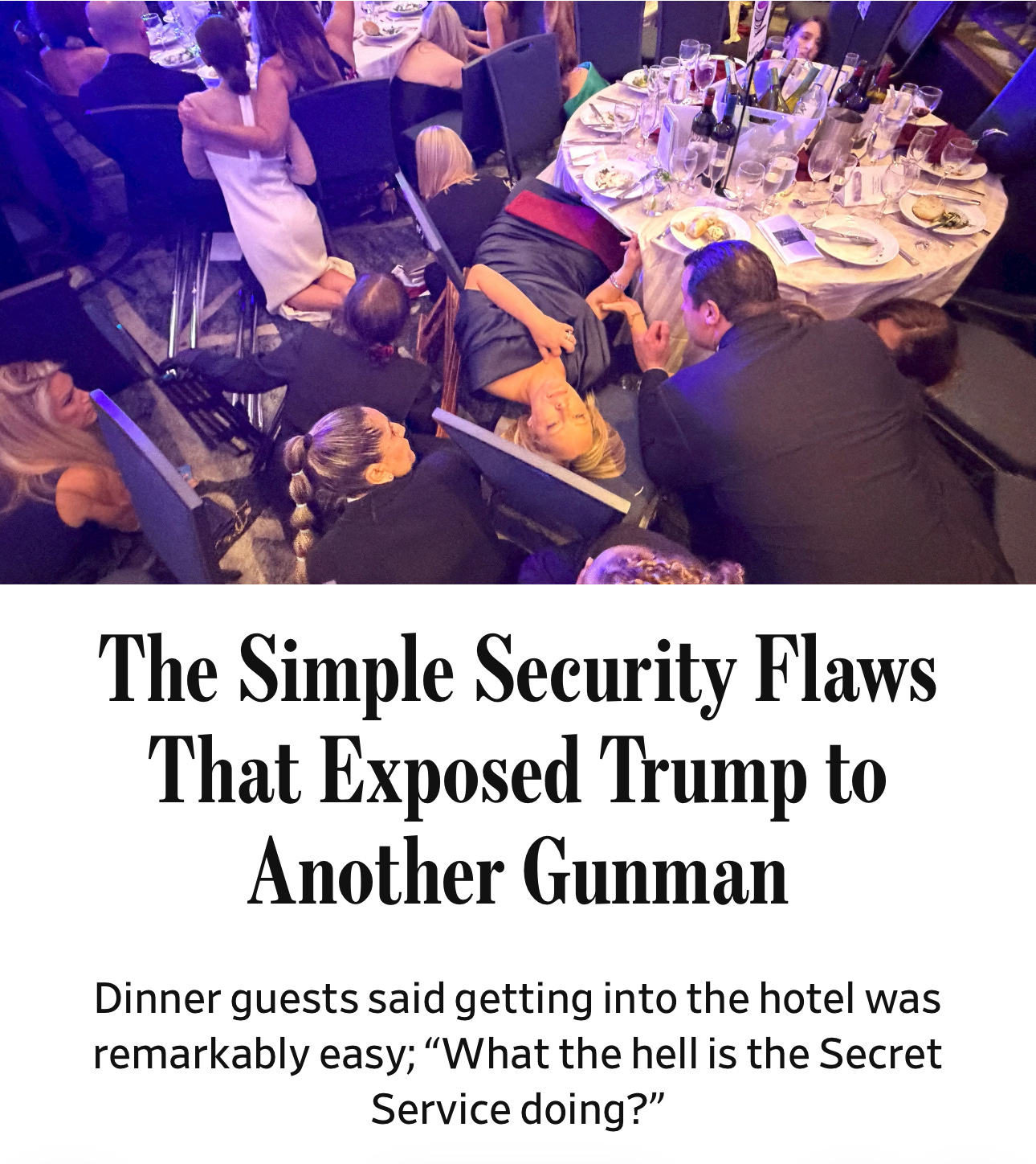 Ce que la sécurité n’a pas empêchéAprès ce qui s’est passé samedi soir, et à quelques heures de l’arrivée du Roi d’Angleterre, les services de sécurité sont sous le feu des projecteurs. Dans l’entretien à CBS, le président minimise ce qui apparaît comme des failles. Comment un homme armé a-t-il pu s’approcher aussi près du président des États-Unis ? Pourquoi le Secret Service a-t-il d’abord évacué le vice-président, et mis plus de temps à mettre le président en sécurité ? Du côté des autorités, le message est clair. “Le système a fonctionné”, rassure Todd Blanche, le ministre de la Justice par intérim (et ancien avocat de Trump), qui a fait le tour des émissions politiques ce dimanche, de NBC à Fox. Le suspect a été stoppé avant d’entrer dans la salle de bal. Il n’a jamais atteint le président ni les 2 500 invités. Pour l’administration Trump, c’est donc la preuve que le dispositif a fonctionné comme prévu. Même lecture chez certains anciens du Secret Service. “Cela aurait pu être un massacre,” explique Paul Eckloff au New York Times. “La question n’est pas de savoir comment il a pu s’approcher. La question est de savoir pourquoi tout le monde est encore en vie.” Autrement dit, ce qui compte, ce n’est pas la brèche, mais le fait qu’elle ait été contenue. Le dispositif reposait sur plusieurs couches de sécurité. Des détecteurs de métaux en première ligne. Des agents positionnés juste après pour filtrer l’accès. À l’intérieur, des équipes d’intervention prêtes à agir immédiatement, certaines en civil, voire déguisées en serveurs. Quand le suspect surgit, il est neutralisé en quelques secondes. Pour les défenseurs du système, c’est exactement ce qui était prévu. Mais cette version est contestée. Car les faits sont têtus. Un homme armé d’un fusil à pompe, d’un pistolet et de couteaux a réussi à courir plusieurs dizaines de mètres et à franchir un point de contrôle avant d’être stoppé. Pour certains experts, c’est déjà une alerte majeure. “Cela n’a fonctionné que par chance,” tranche Bill Gage, ancien agent du Secret Service, cité par la chaîne MS Now. Selon lui, si l’assaillant avait gagné quelques secondes, il aurait pu entrer dans la salle et tirer. Le dispositif n’a pas tant empêché l’attaque qu’il ne l’a arrêtée à la dernière seconde. À la lecture des enquêtes de la presse, trois failles principales émergent. La première concerne le point de contrôle. Les agents présents au dernier checkpoint, situé à quelques mètres de la salle, ont été pris de court. Le dîner avait commencé, ils ne s’attendaient plus à voir arriver de nouveaux entrants. Certains regardaient ailleurs lorsque le suspect a surgi. Une faille de vigilance, au pire moment. La deuxième concerne l’évacuation. Le Washington Post décrit une scène chaotique, des agents obligés d’enjamber des tables, de contourner des invités cachés sous leurs chaises, dans une salle bondée de plus de mille personnes. Le vice-président est évacué avant le président, ce qui interroge certains observateurs, même si les autorités évoquent des logiques opérationnelles distinctes. La troisième concerne le lieu lui-même. Le Washington Hilton est un casse-tête sécuritaire. Un hôtel ouvert, avec plus de mille chambres, des clients qui circulent librement, des espaces publics impossibles à verrouiller totalement. Le suspect avait d’ailleurs réservé une chambre la veille, ce qui lui a permis d’explorer les lieux. “Il n’a pas déjoué le dispositif de sécurité le soir du dîner. Il l’a déjoué le jour où il a fait sa réservation,” résume un ancien responsable du FBI dans le Wall Street Journal. Autre élément clé, le niveau de sécurité. Contrairement à une investiture ou à un discours sur l’état de l’Union, le dîner n’était pas classé comme un National Special Security Event. Le Washington Post souligne que cette classification déclenche normalement une mobilisation maximale des ressources fédérales. Ce n’était pas le cas ici, malgré la présence du président, du vice-président et de plusieurs membres du gouvernement. Résultat, un périmètre de sécurité plus limité, et une responsabilité fragmentée entre plusieurs agences fédérales. Depuis la tentative d’assassinat de 2024 à Butler, où un tireur avait réussi à atteindre Donald Trump, le Secret Service est sous pression. À l’époque, les experts parlaient déjà d’une “faille” dans la préparation. Alors, la sécurité a-t-elle failli ? Pas totalement. Le suspect a été arrêté. Personne n’a été tué. Le président est sain et sauf. Mais le simple fait de poser la question suffit à montrer qu’il y avait une brèche dans la sécurité. Ce qui est inquiétant quand on sait que Donald Trump a déjà été à plusieurs reprises la cible de tentatives d’assassinat. “Staged”Dans la version de l’entretien de Trump à 60 minutes qui n’a pas été diffusée dans l’émission, il y a un passage intéressant que CBS a mis en ligne sur ses réseaux. Le président Trump balaie les théories du complot sur l’attaque et dit que les personnes qui les propagent sont “plus malades qu’elles ne sont escrocs”.
