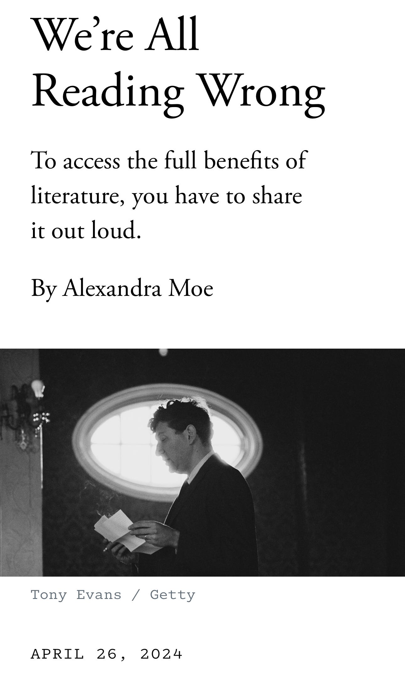 La thèse de l’auteure de ce papier de The Atlantic, Alexandra Moe, c’est que “pour accéder pleinement aux bienfaits de la littérature, il faut la partager à voix haute”.