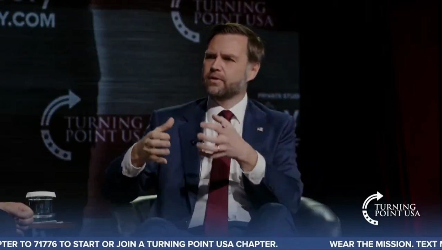 On sait que Vance aime rappeler son parcours intellectuel. C’est vrai que c’est par le débat d’idées qu’il est entré en politique, après l’écriture d’un livre sur le malaise des classes populaires blanches. Il va publier prochainement un récit sur sa conversion au catholicisme (même s’il a validé la couverture avec une image d’église… protestante).