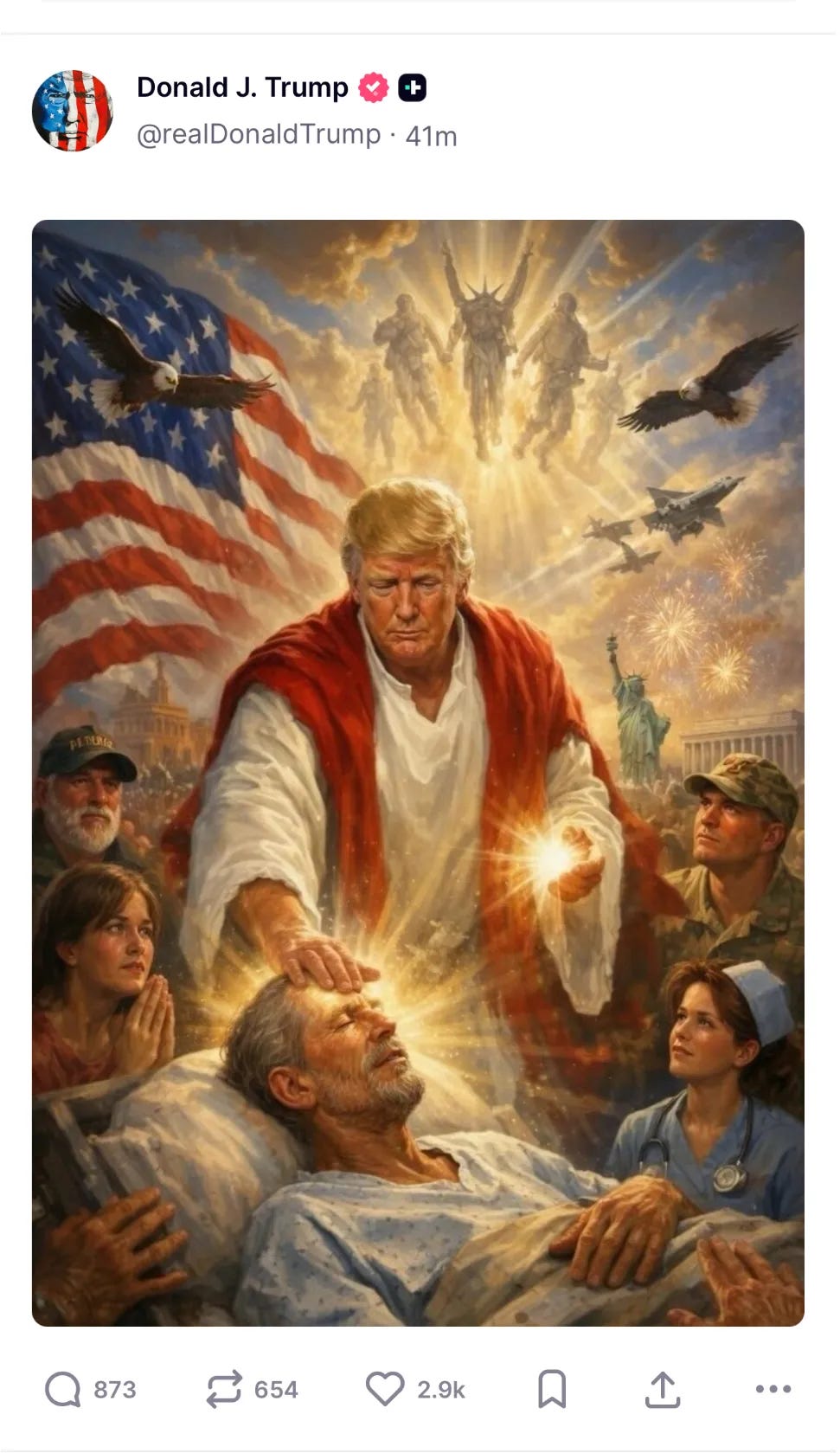 Trump a retiré l’image (c’est très rare), signe qu’il a constaté l’effet dévastateur de cette représentation en Christ pour une partie de son électorat.