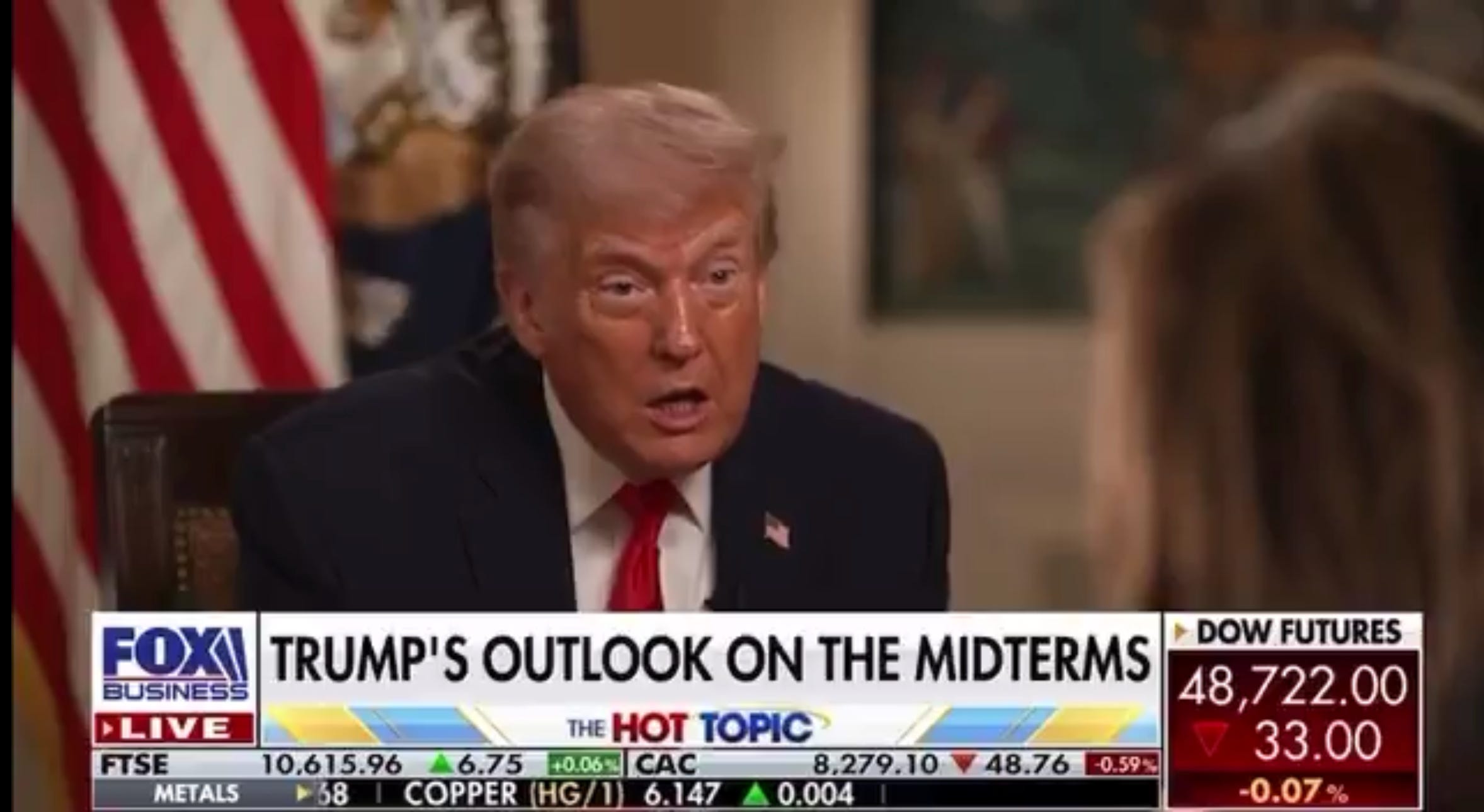 “Est-ce que la guerre est terminée ?” lui demande son amie Maria Bartiromo, papesse de la chaine financière.
